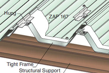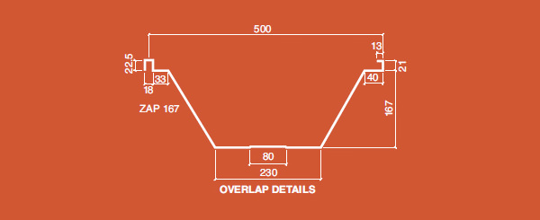 ZAP-167™ roofing system is a proven and most sturdy Japanese technology. It is a screw less standing seam profile which is 167mm deep, supported on tight frames and can be formed up to single length of 100mts. Available in Galvalume and color coated steel in various colors. Aesthetical and robust looking. 80000 sqm installed for prestigious projects like Maruti Suzuki, Bridge Stone etc.
