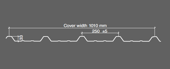 - >33mm height, 250 mm pitch with two stiffening ribs for easy water shedding.